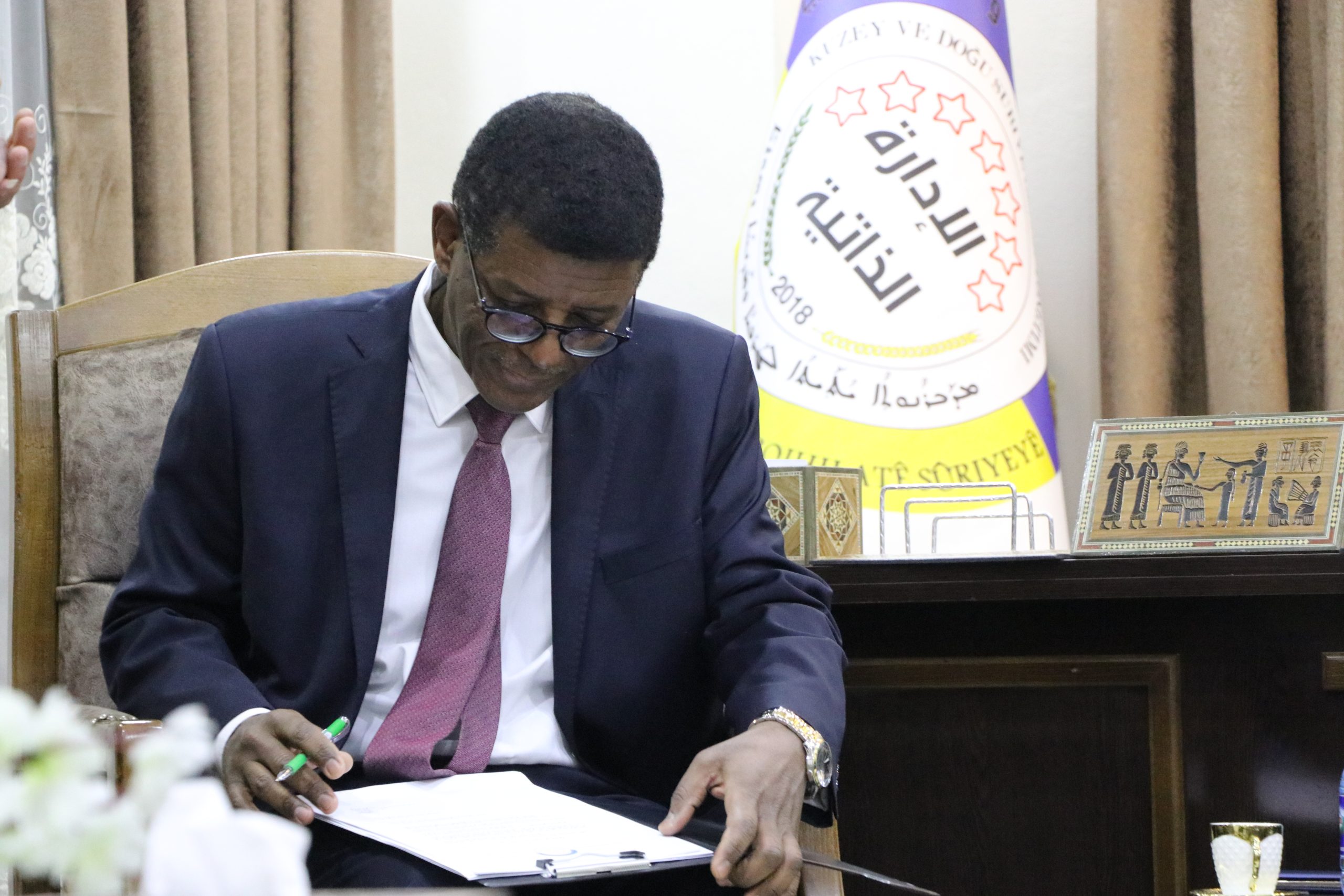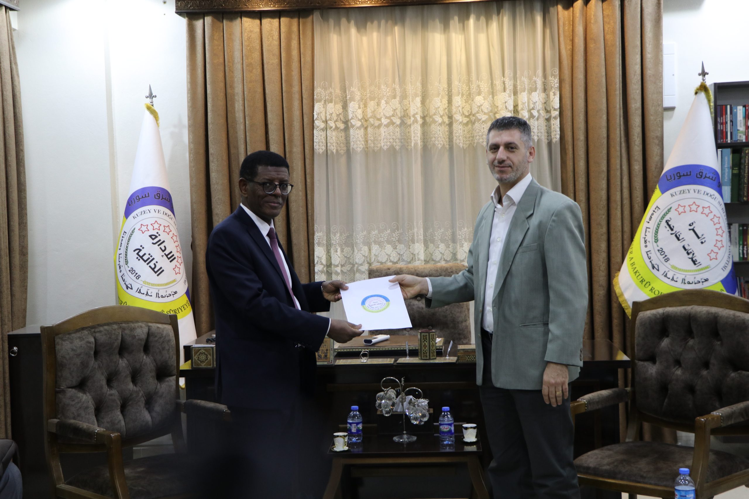 Am Donnerstag besuchte eine sudanesische Delegation unter der Leitung des stellvertretenden Botschafters Tariq Abdullah Ali Muhammad sowie Jalal Al-Din Muhammad Abdullah Baaqoub, diplomatischer Berater der sudanesischen Botschaft und Diaa Al-Din Rushdi Muhammad Hassan, Mitarbeiter der Botschaft, das Büro für Außenbeziehungen der Selbstverwaltung von Nord- und Ostsyrien (AANES) in Qamischlo.